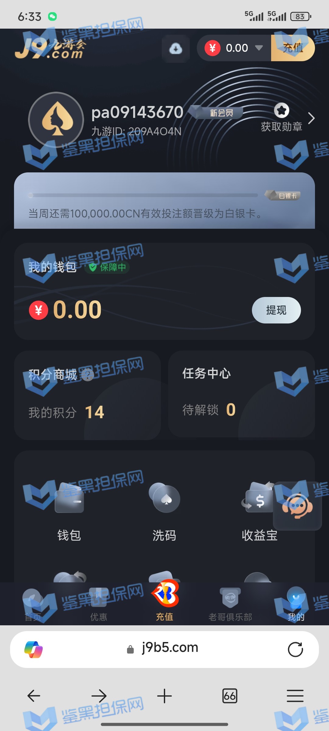 去年9月份在九游会j9b5.com充值500打到1000直接黑款,不带任何理由,九游ID: 209A4O4N