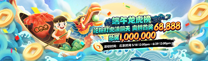 活动期间内,在【CQ9传奇电子】的「老虎机」游戏下注,即可参加端午龙虎榜。